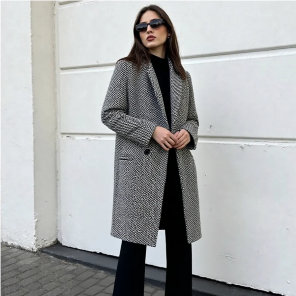 L'élégante veste mi-longue Caterinella est votre compagnon indispensable pour les fraîches journées d'automne et les soirées hivernales. Avec son motif pied-de-poule classique et sa silhouette intemporelle, elle allie sans effort style, confort et chaleur. Elle est parfaite pour toutes les occasions, au quotidien comme pour les moments spéciaux.